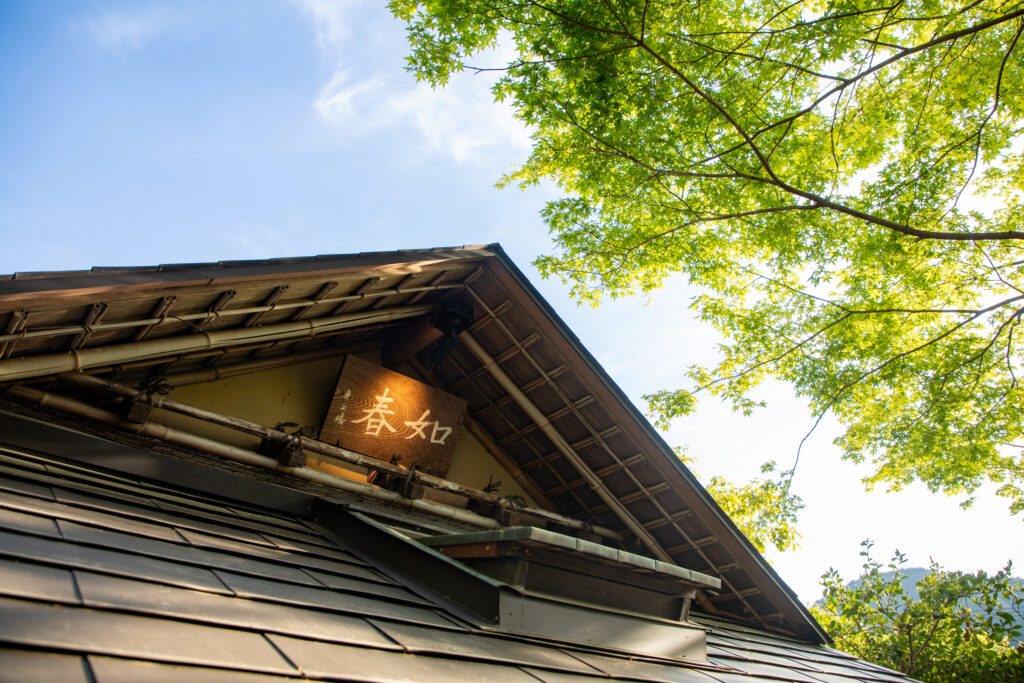 敷地内に鎮座する本格数寄屋造りの茶室「如春」にて、お濃茶・薄茶を味わいながら茶道の精神に触れる静謐な時間をお過ごしいただけます。